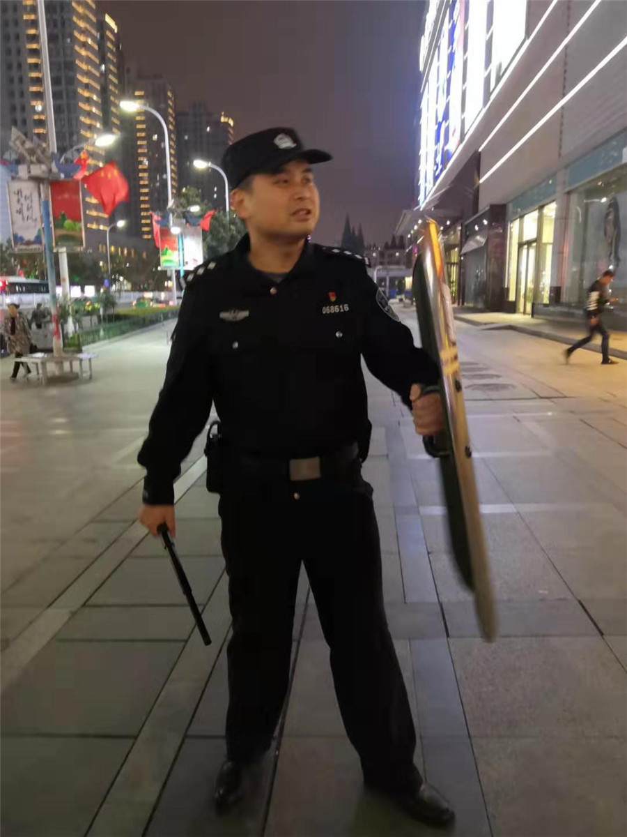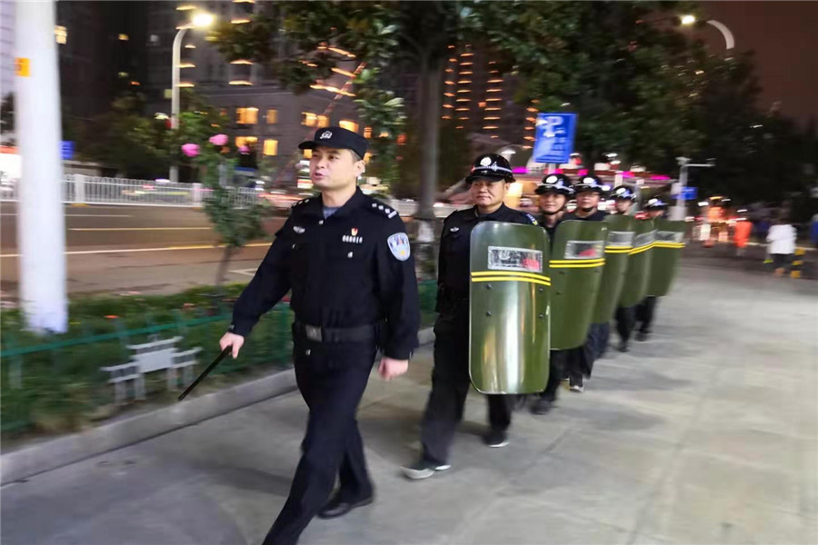 2019年10月9日樊城區(qū)公安分局內(nèi)保大隊(duì)陳鵬隊(duì)長(zhǎng)依然堅(jiān)守不放松“不忘初心、牢記使命”主題教育活動(dòng),并組織樊城區(qū)漢江派出所民警和戎安保安服務(wù)有限公司保安隊(duì)員,在樊城區(qū)人員密集場(chǎng)所開展義務(wù)巡邏。